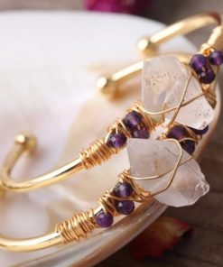 Natural Clear Quartz Open Cuff Wire Wrap Irregular Copper Bangles