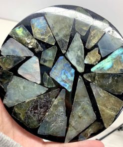 Natural Flashy Labradorite Quartz Crystal Palm Stone