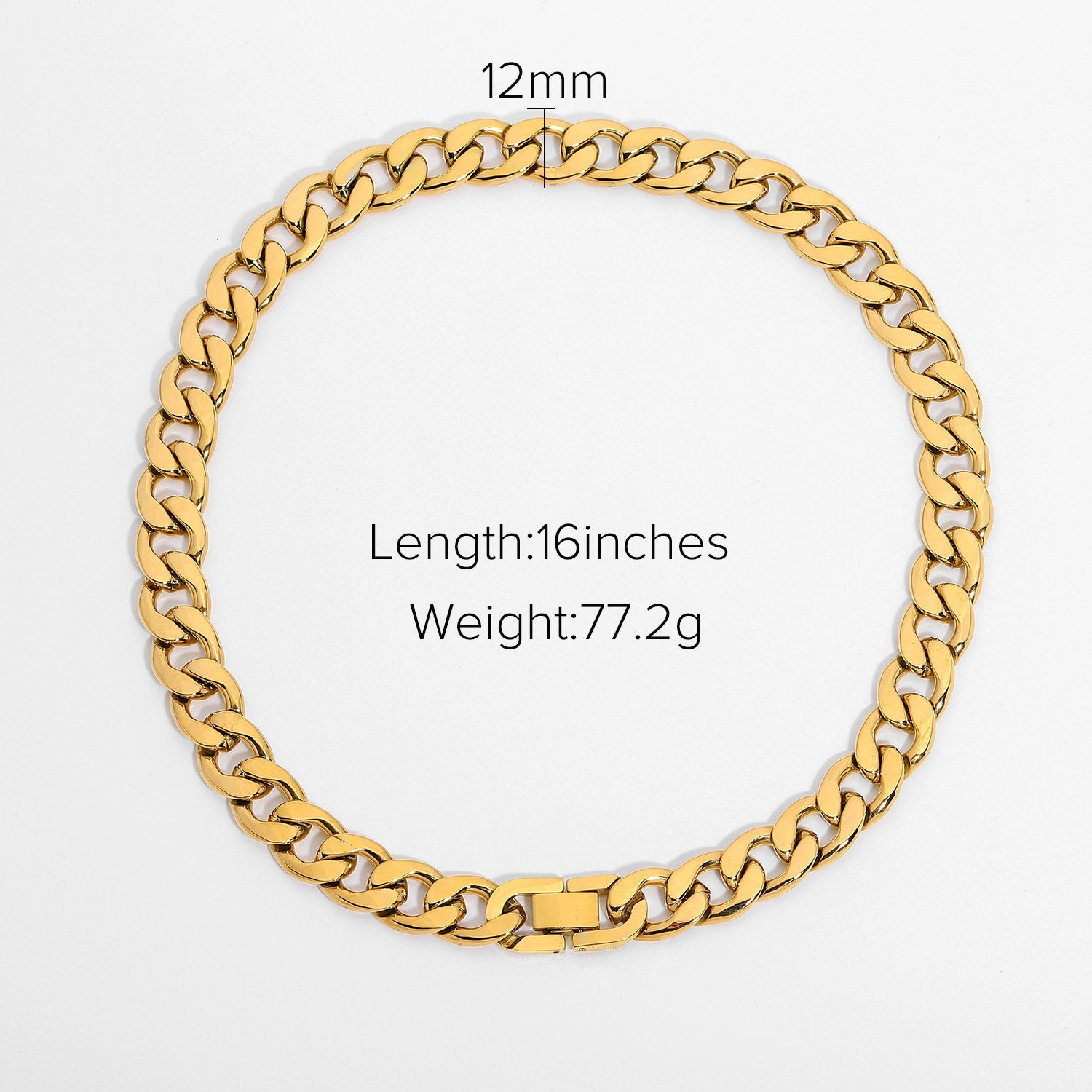 18k Gold Plated Stainless Steel Thick Cuban Chain Miami Double Layer Snake Chain Choker Necklace