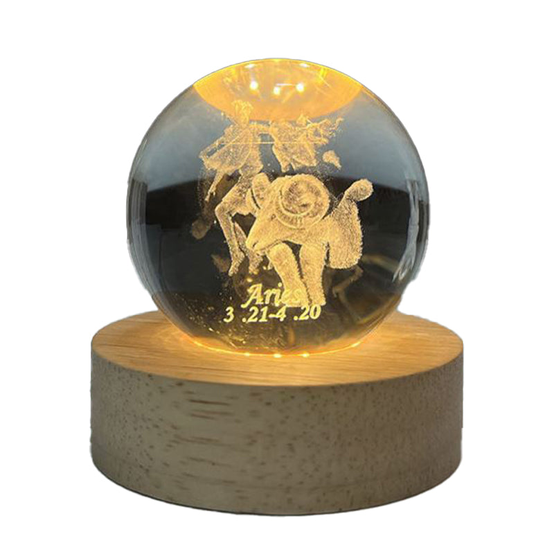 3D Laser Constellation Ball Crystal Paperweight Full Sphere Glass Fengshui Inside 12 Constellations