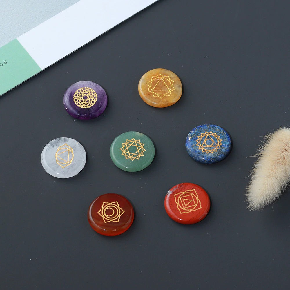 7 pcs Chakra Engraved Words Gemstone Natural Seven Chakra Reik Healing Crystal