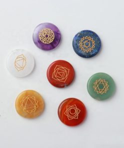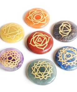 7 pcs Chakra Engraved Words Gemstone Natural Seven Chakra Reiki Healing Crystal