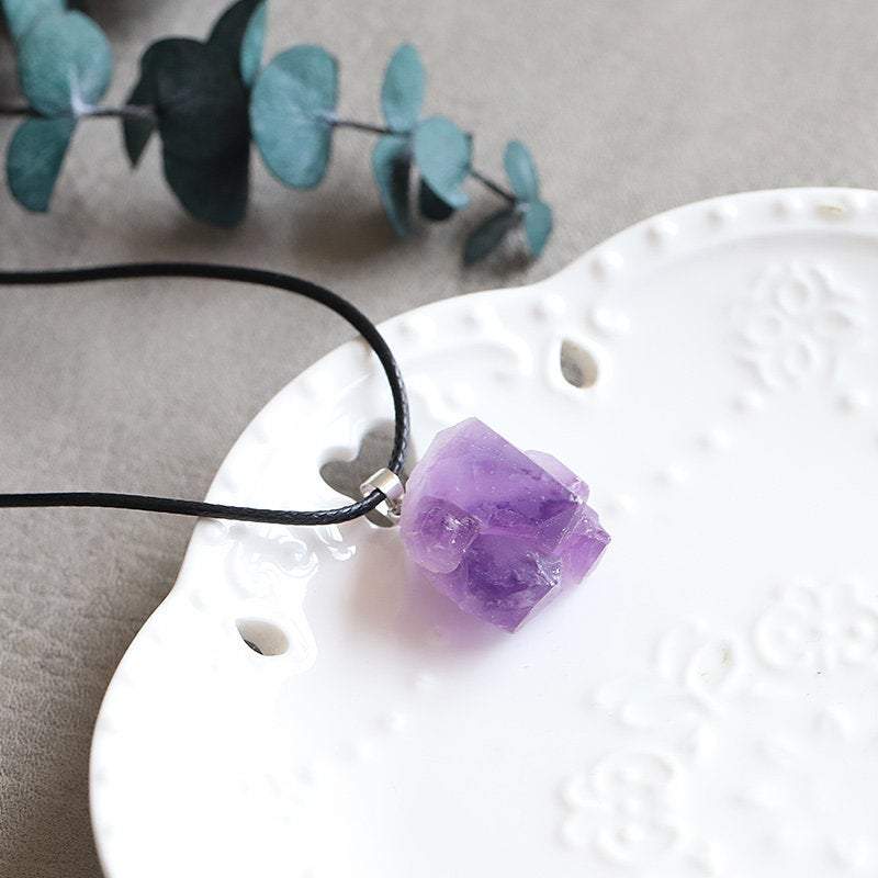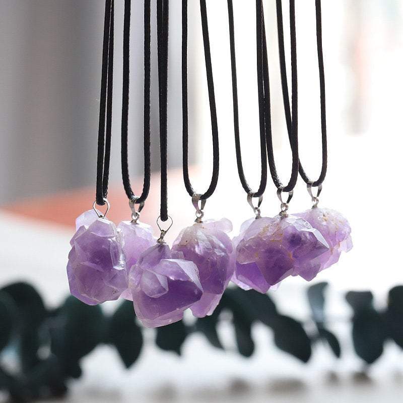 You will receive 1 necklace. MINERAL INFO: Amethyst is a type of Igneous quartz with impurities of iron that scatter the light passing through it giving it the signature purple color. These clusters are in “geode” form and are raw on the backside This listing uses professional photography that samples our collection. YOU WILL RECEIVE A SIMILAR STONE, BUT NOT AN EXACT STONE IN THESE PHOTOS. Each stone is unique and beautiful so please expect slight variations in color, texture, and size. Please add a note to your order with any specific requests and we will do our best to fill it from the stock available. Please read our Policies before you purchase. Feel free to contact us with any other questions. Thank you for supporting!