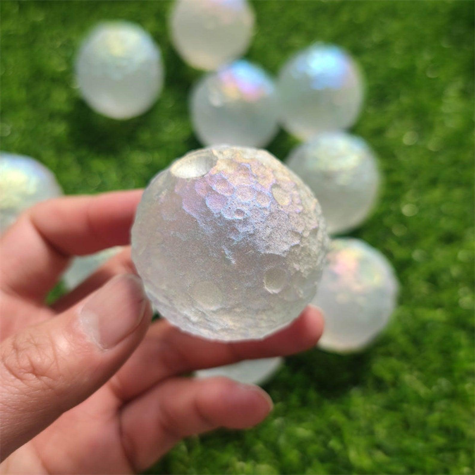 Angel Aura Quartz Moon Sphere Crystal Moon Mineral Samples Crystal Carving Moon Crystal Home Decor