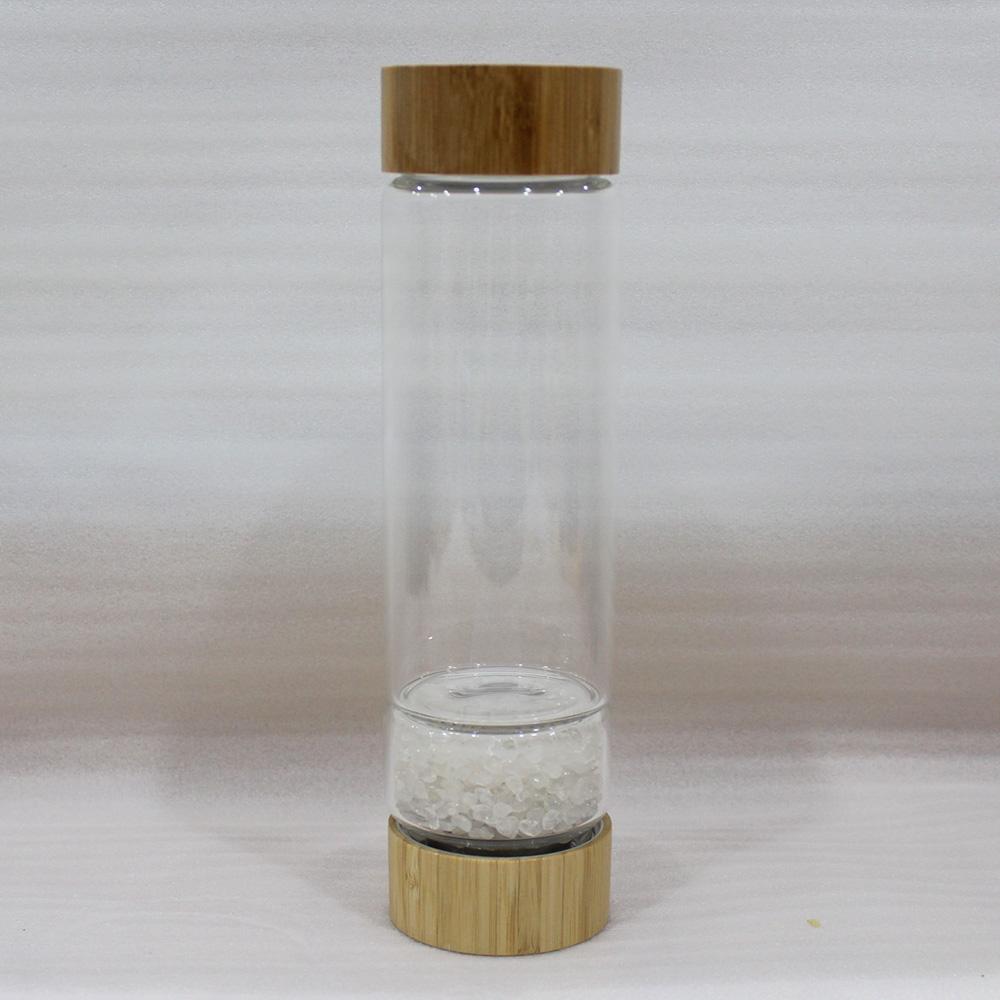 Bamboo Lid Clear Quartz Crystal Water Bottle
