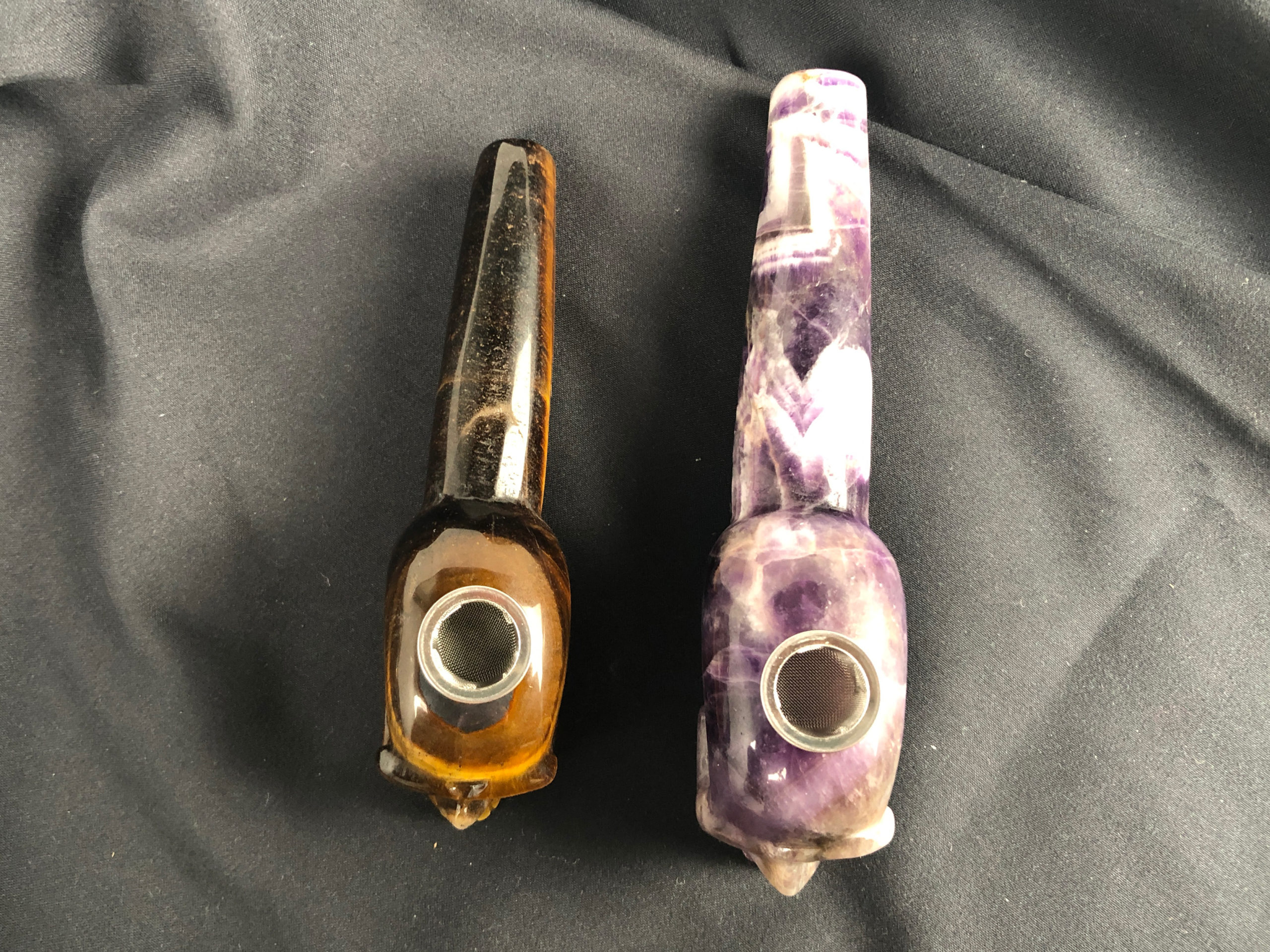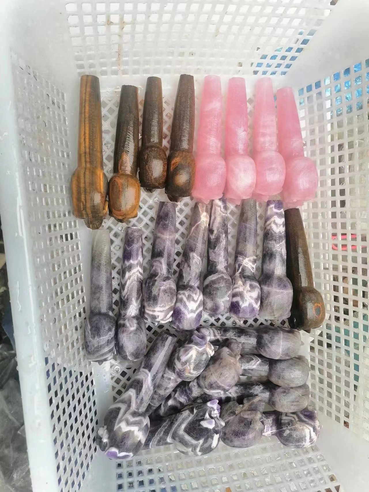 Carved Crystal Smoke Tobacco Pipes,Natural Healing Stone Skull Carving Crafts
