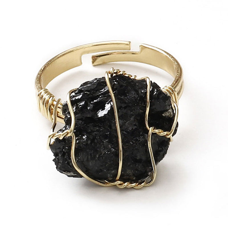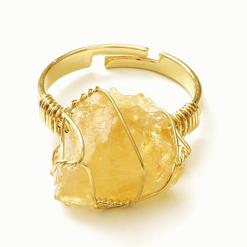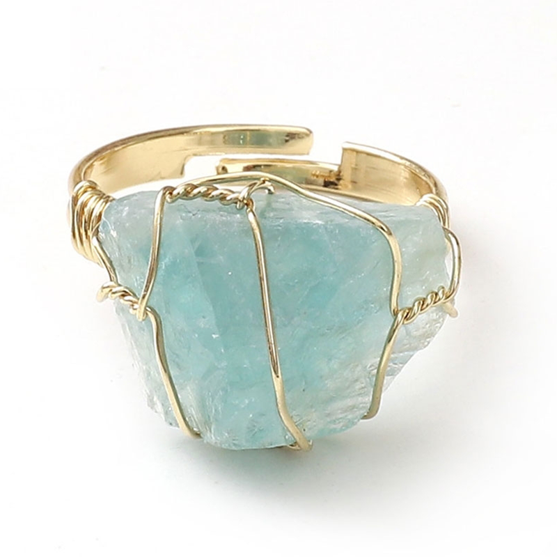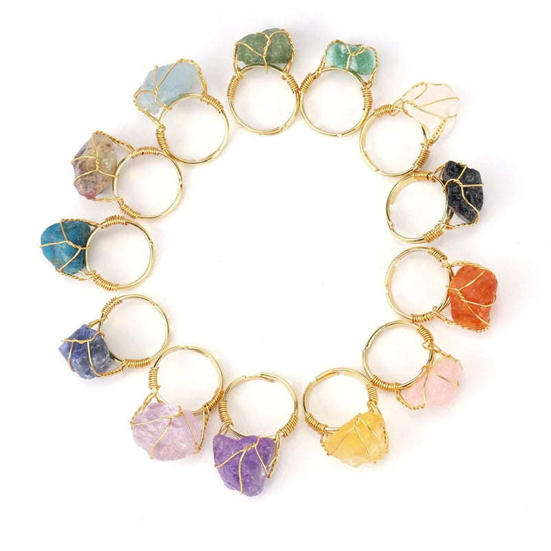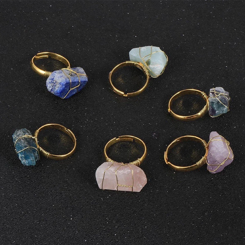 Chakra Crystal Ring Raw Ore Adjustable Metal Healing Stone Gift Jewelry