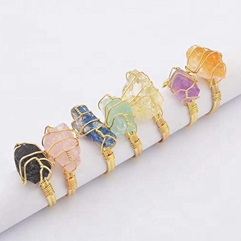 Chakra crystal ring: the colorful crystal ring decorated with copper wire, exquisite and beautiful, these crystal rings contribute to beauty, health, good luck, healing, meditation and other mysterious effects