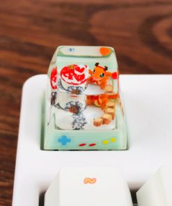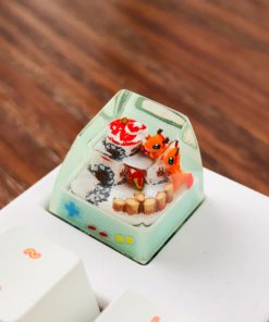 Professional designers design the shape, then produce the model through 3D printing, color it by hand, and finally use environmentally friendly epoxy resin to make the keycap.