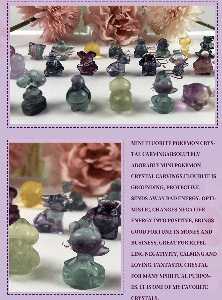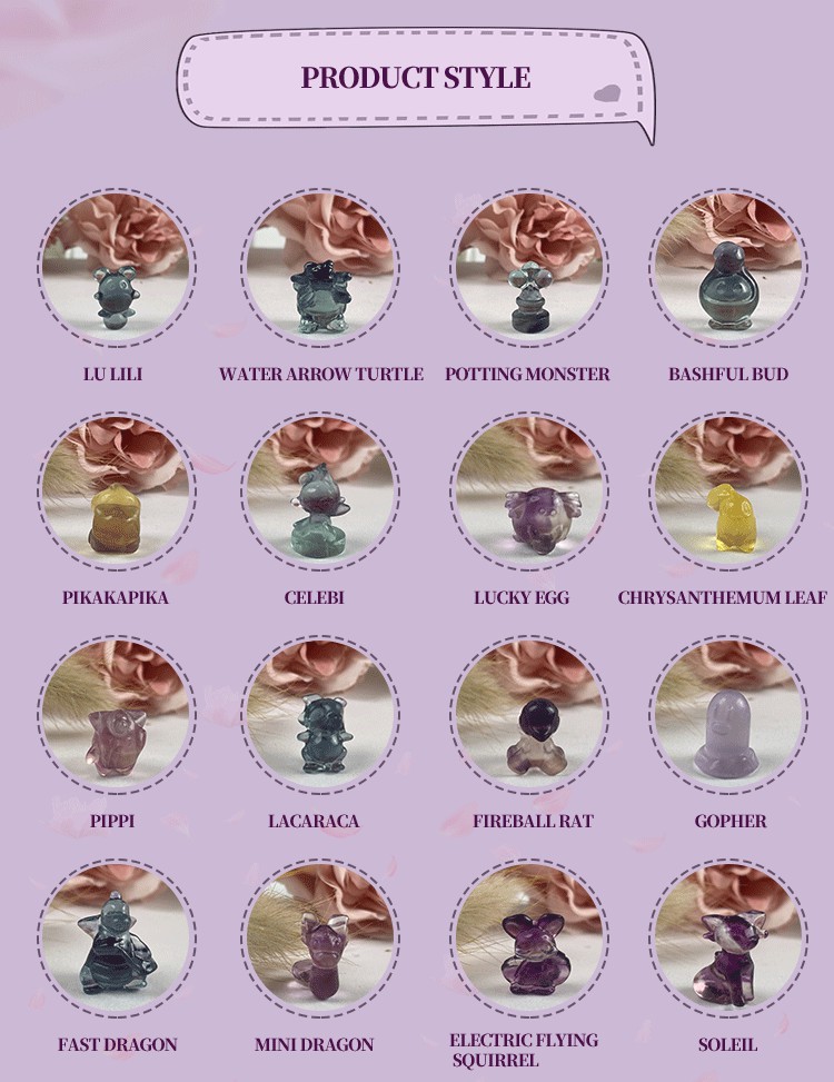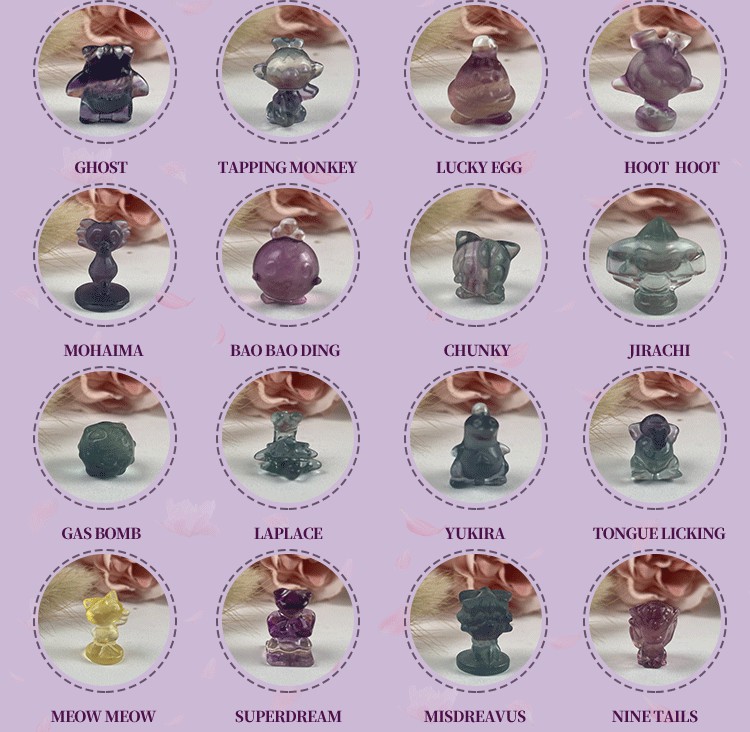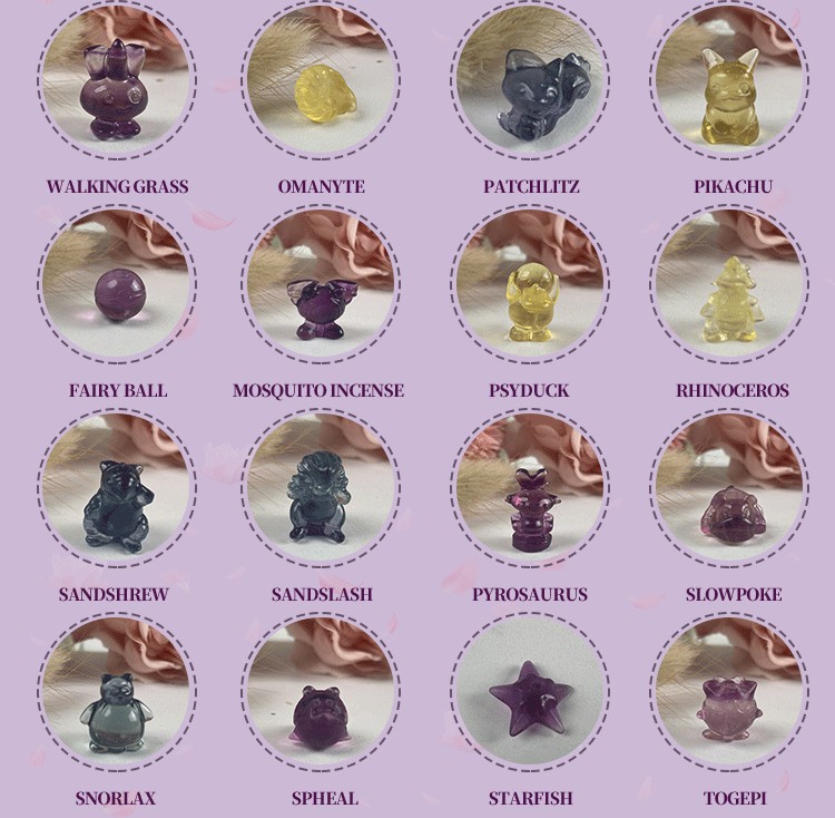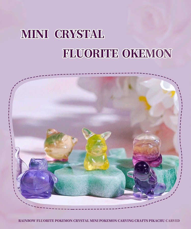 Crystal Multi-Color Fluorite Mini Pokemon Souvenir Carving Cute Rainbow Pikachu Delicate Crafts