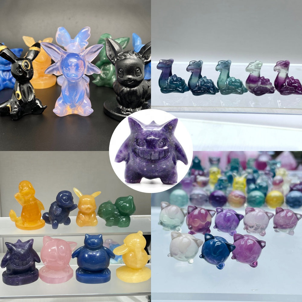 Crystal Pokemon Carving Mew Crafts Crystal Pikachu Carved Cartoon Fluorite Pokemon