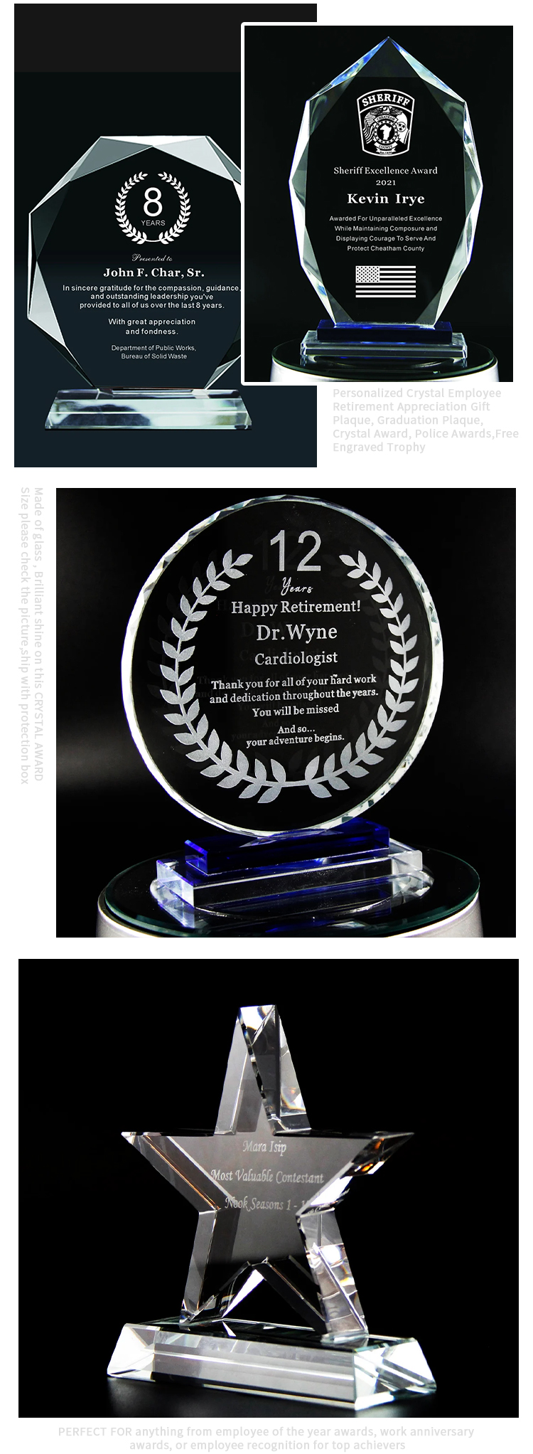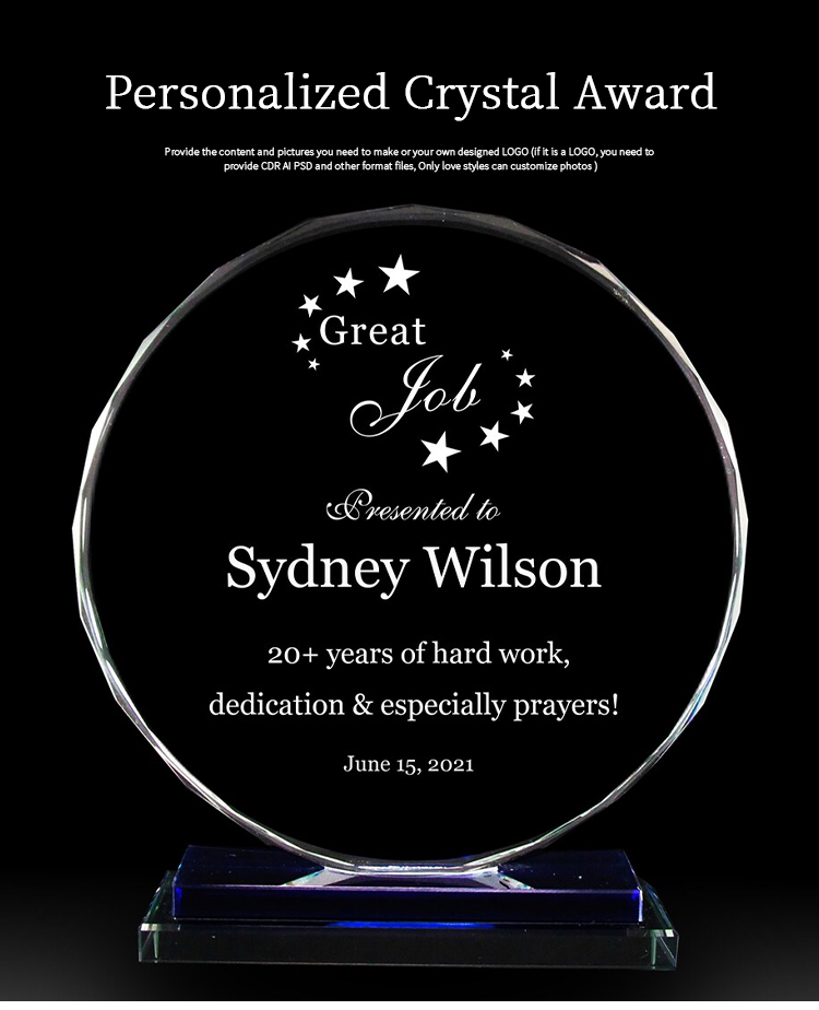 Custom Glass Trophy K9 Crystal Trophy Award Crystal Souvenir Gift