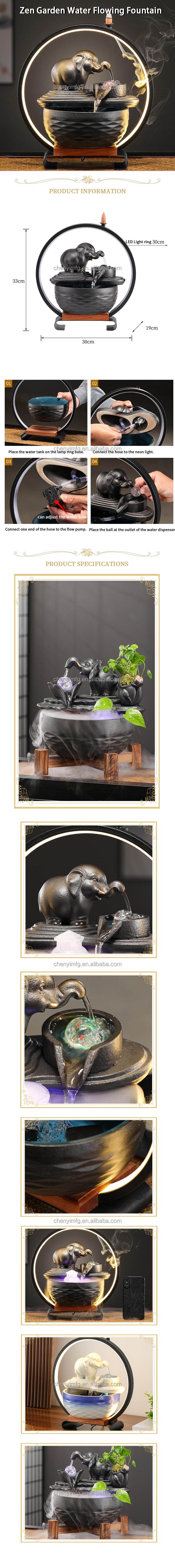Customized LOGO Elephant Flowing Water Ornaments Attract Wealth Living Room Flowing Crystal Ball Fenshui Lucky Peaceful Fountain