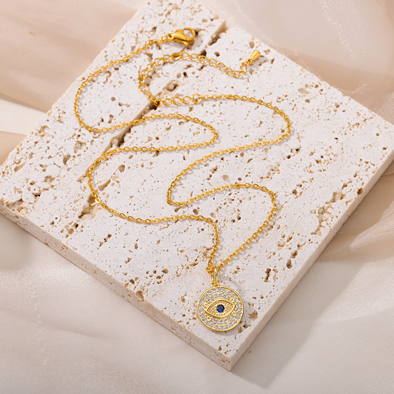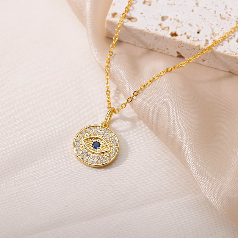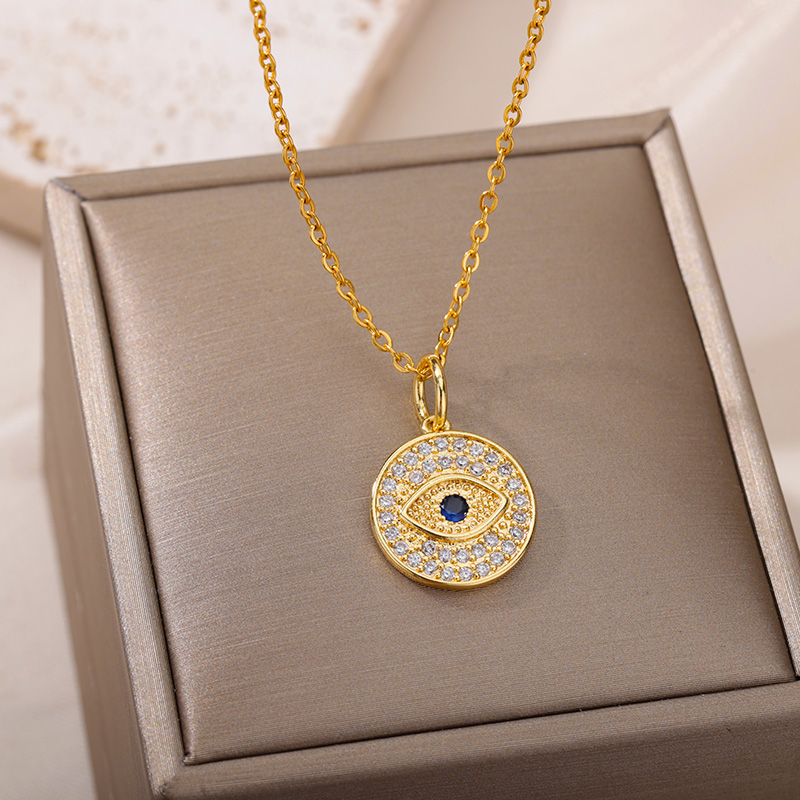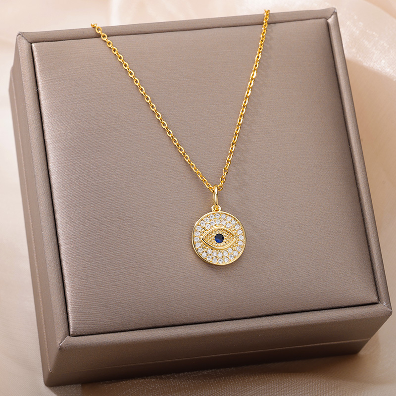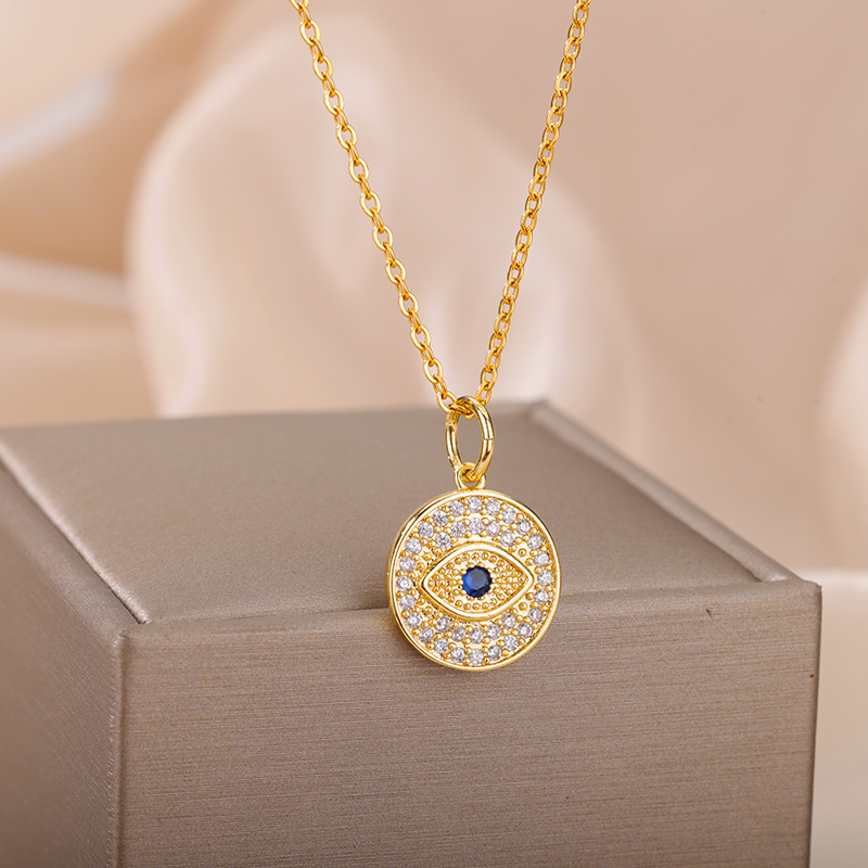 Evil Eye Necklace Stainless Steel Gold Cubic Zirconia Simulated Diamond Pendant Necklace Fine Jewelry for Women Girls