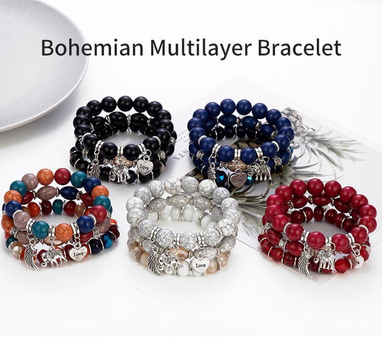 New Bohemian Bodhi Beads Stacked Bracelet Set Jewelry For Women Tassel Multilayer Bracelet Gift Wholesale