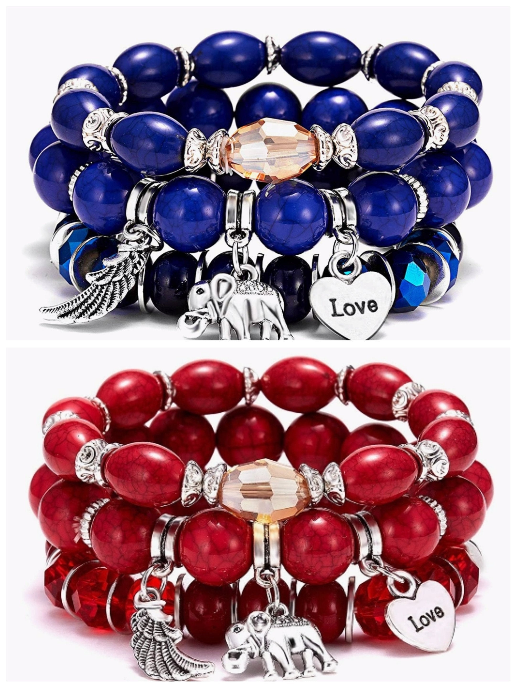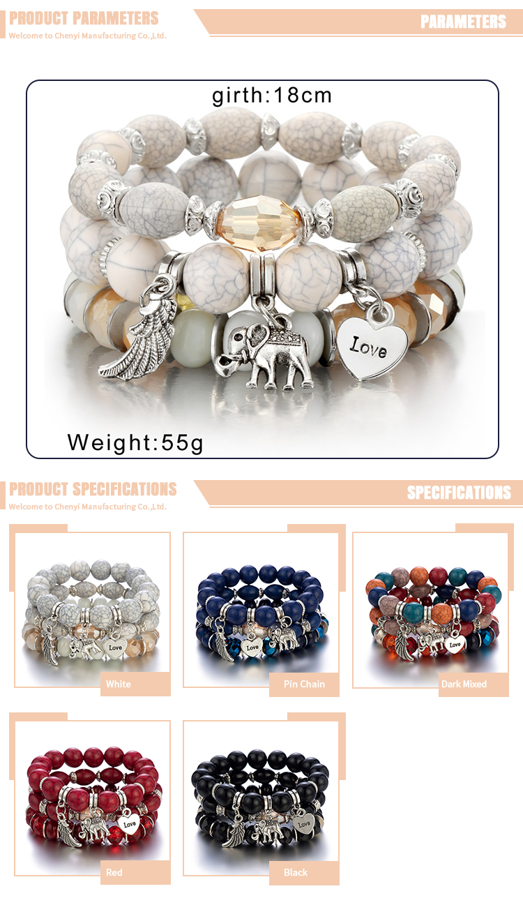 Factory Wholesale Crystal Bead Women Luxury Bangles Bracelet Set With Charms Vintage Stretch Natural Beaded Bracelets Women