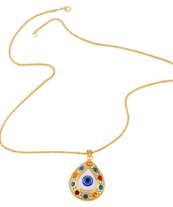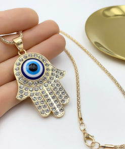 Gold Plated Colorful Lucky Turkish Jewelry Blue Evil Eye Hamsa Hand Pendant Necklace