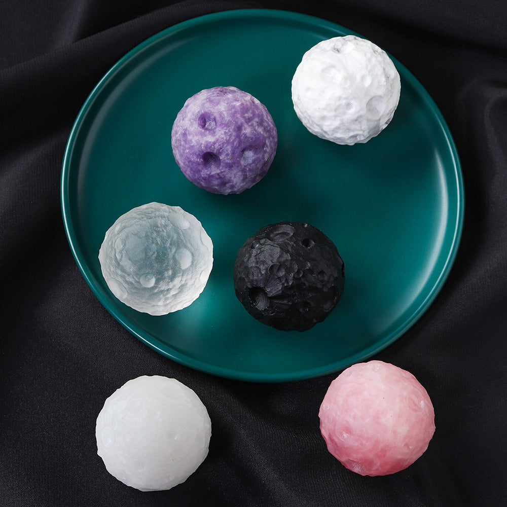 Hand Carved Natural Flash Labradorite Crystal Moon Sphere