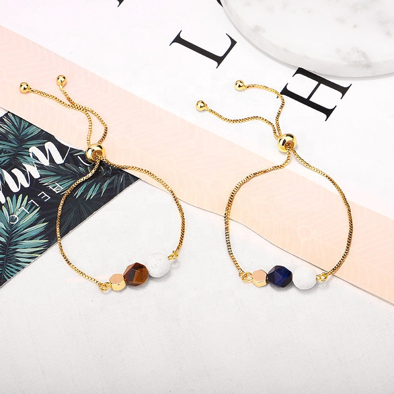 Handmade Adjustable 14k Gold Plating Natural Stone Beaded Minimalist Bracelet For Women Men