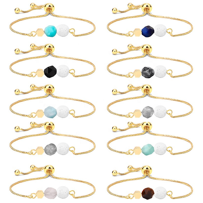 Handmade Adjustable 14k Gold Plating Natural Stone Beaded Minimalist Bracelet For Women Men