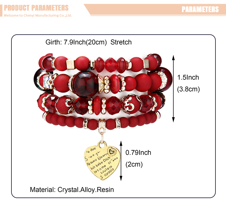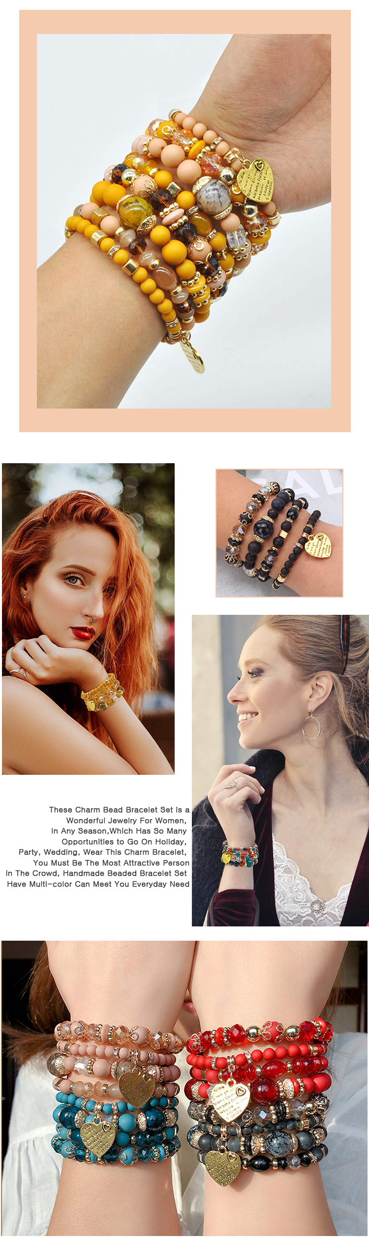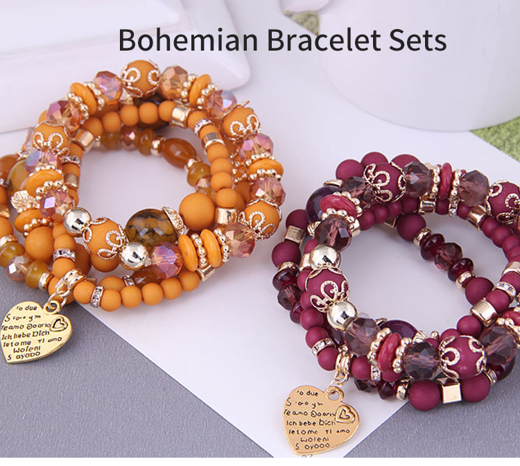 High Quality Luxury Custom Logo Boho Multi Layer Glass Women Bracelets Beaded Love Heart Pendant Bead Bracelet Sets 2022