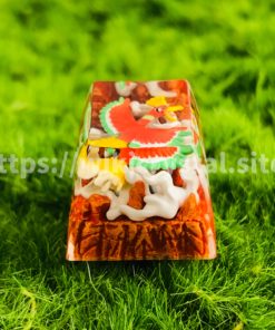 Professional designers design the shape, then produce the model through 3D printing, color it by hand, and finally use environmentally friendly epoxy resin to make the keycap.