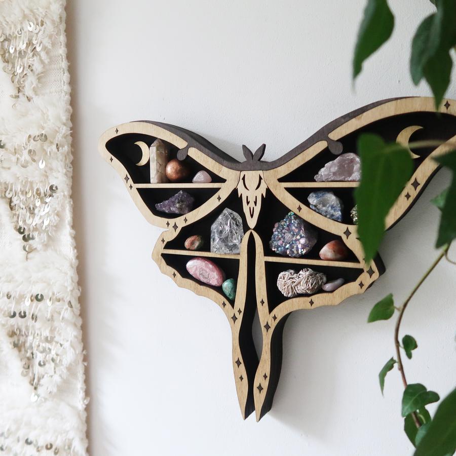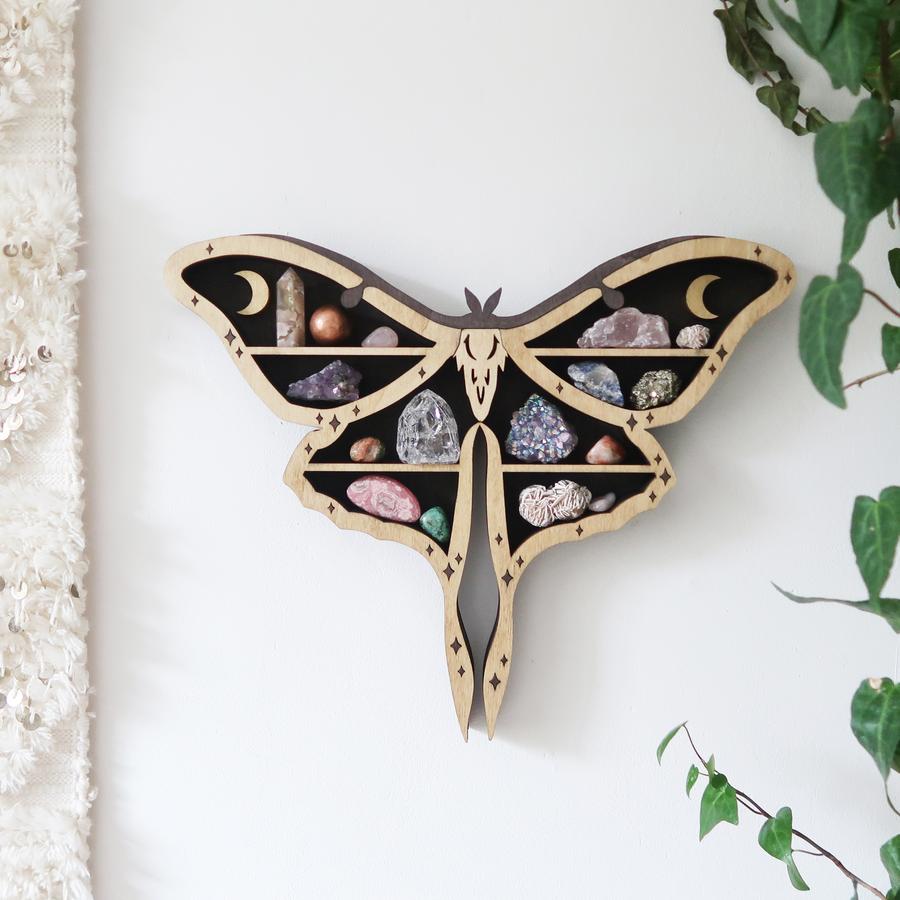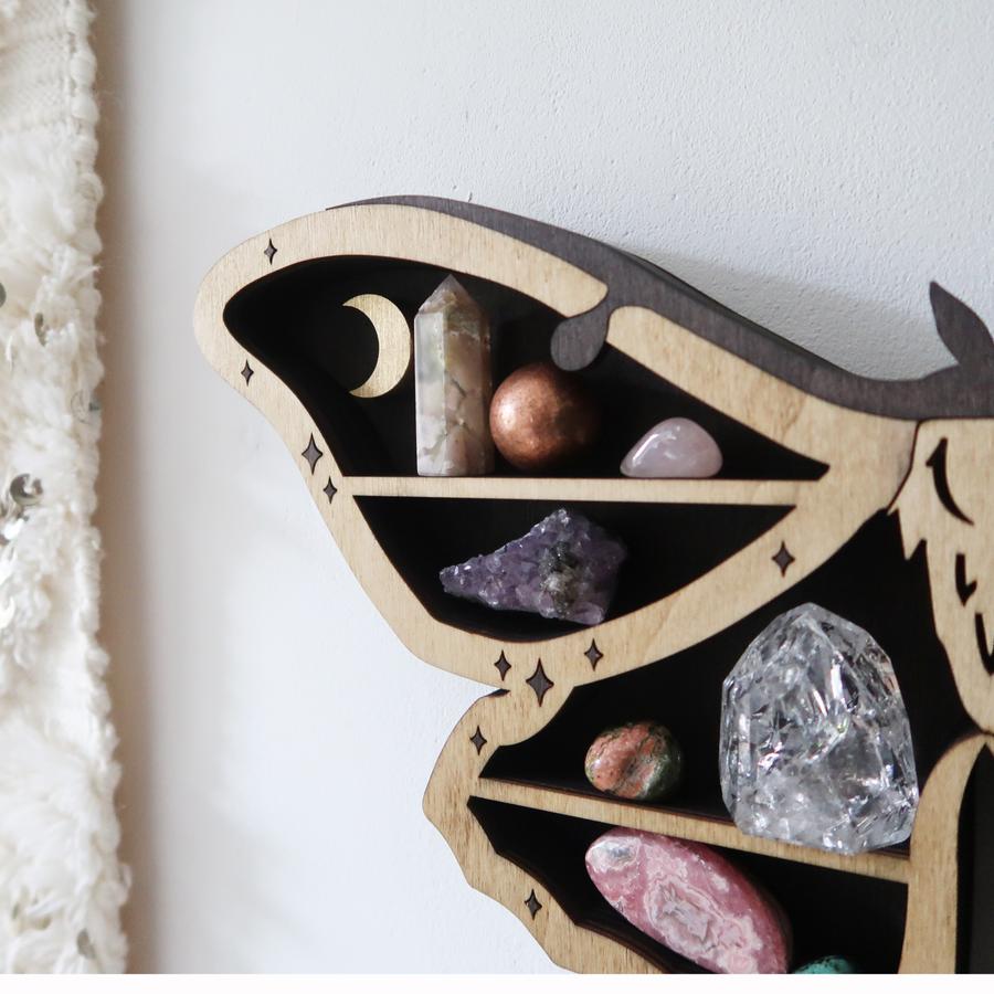 This beautiful Luna moth light up design will be a unique place to display your crystals and keepsakes.