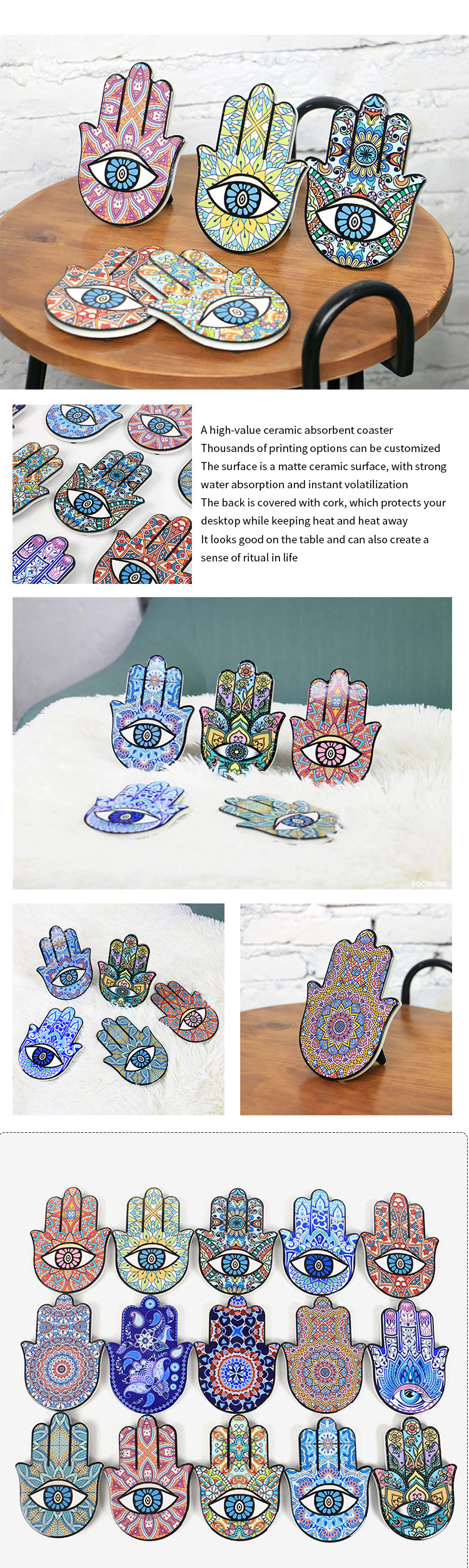 Modern Hamsa Hand Ceramic Coaster For wedding table decoration