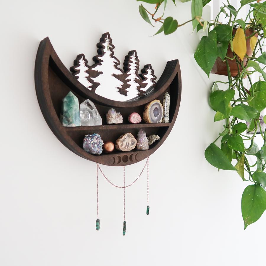 MOON AND FOREST CLUSTER MOONPHASE MIRROR SHELF