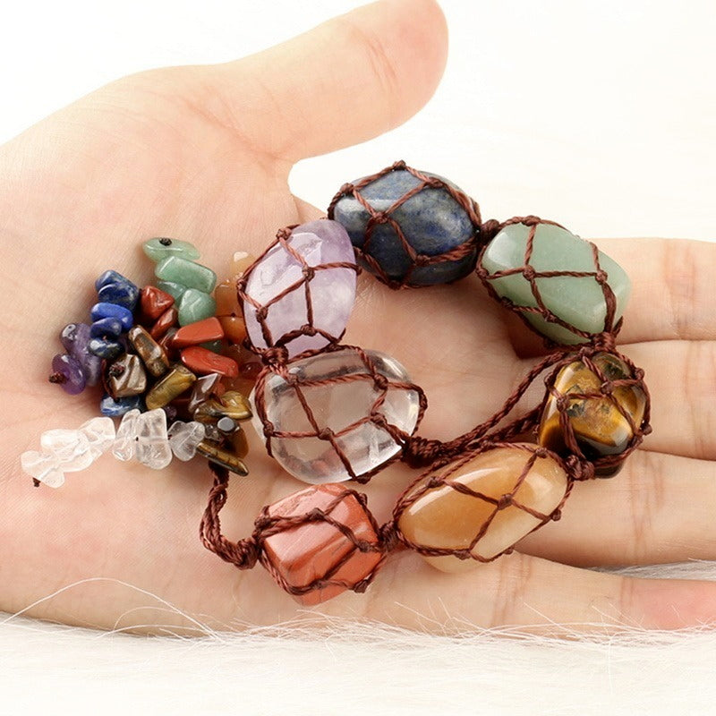 7 Chakras Healing Crystals: Clear Crystal Quartz, Amethyst, Lapis Lazuli, Green aventurine, Tiger eye, Red Agate, Red Jasper