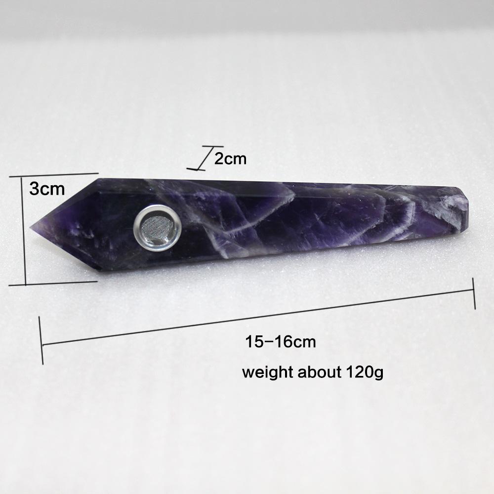 | Fragile items, please handle with care! Crystal Smoking Pipe! Product Name: Natural Dream Amethyst Lengthens Smoking Pipe Material: dream amethyst Color: purple Size: length150-160mm Weight about: 120g This listing is for similar items shown in the pictures, we will send by randomly. |