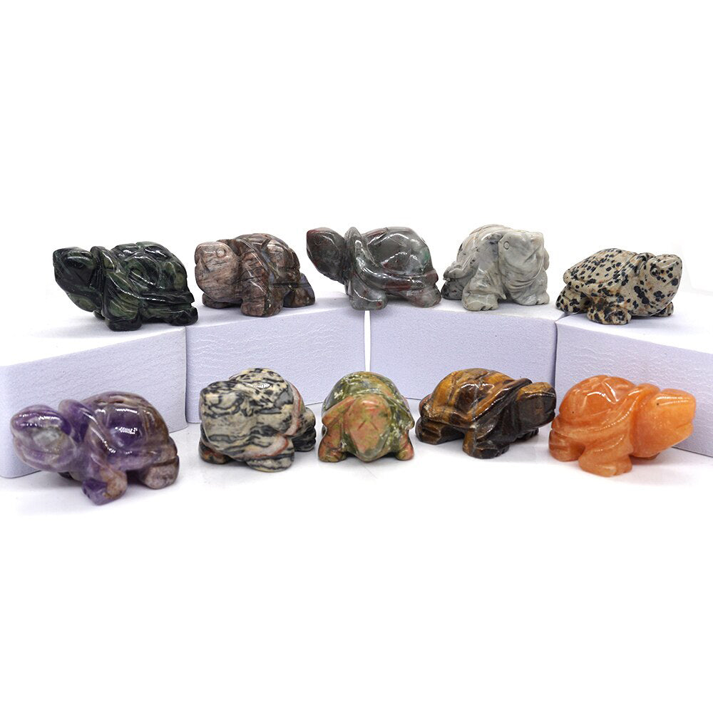 Natural Hand Carved Animal Crystal Sculpture Fluorite Turtle Animal Carved