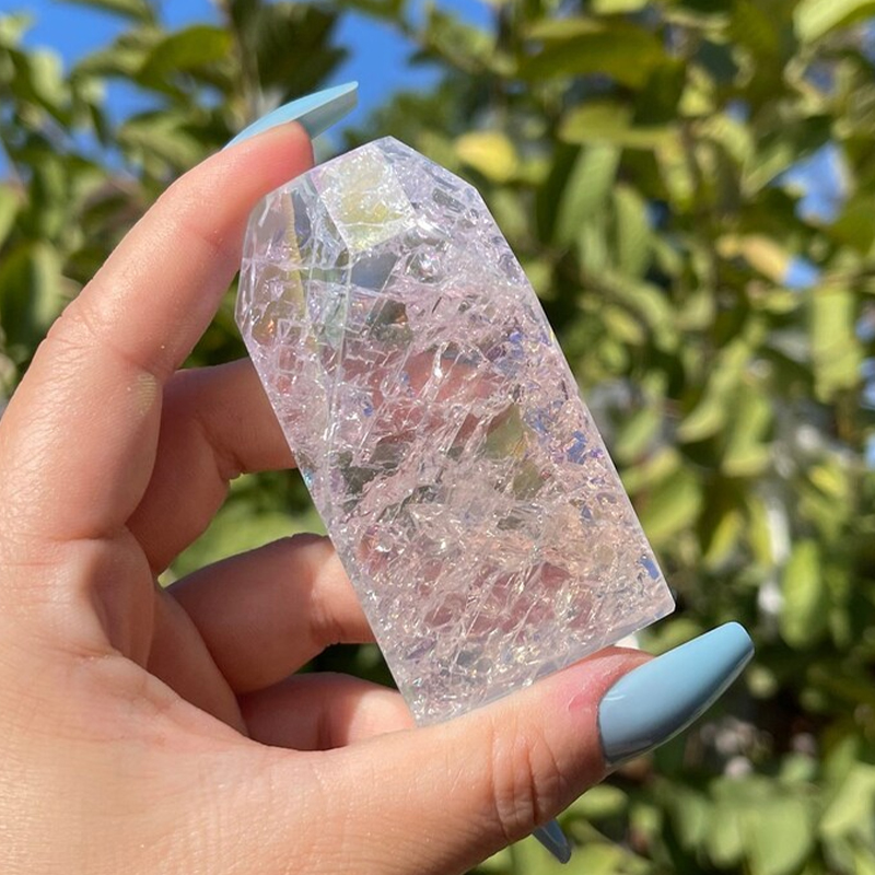 Natural Hand Carved Healing Clear Crackle Quartz Block Freeform
