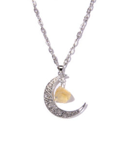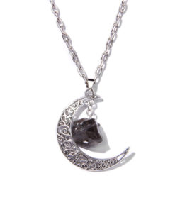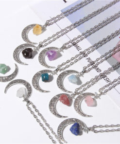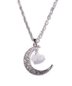 Silvery Color Crescent Moon Pendant Healing Crystals Stones Bead Raw Gemstone Charm Necklaces