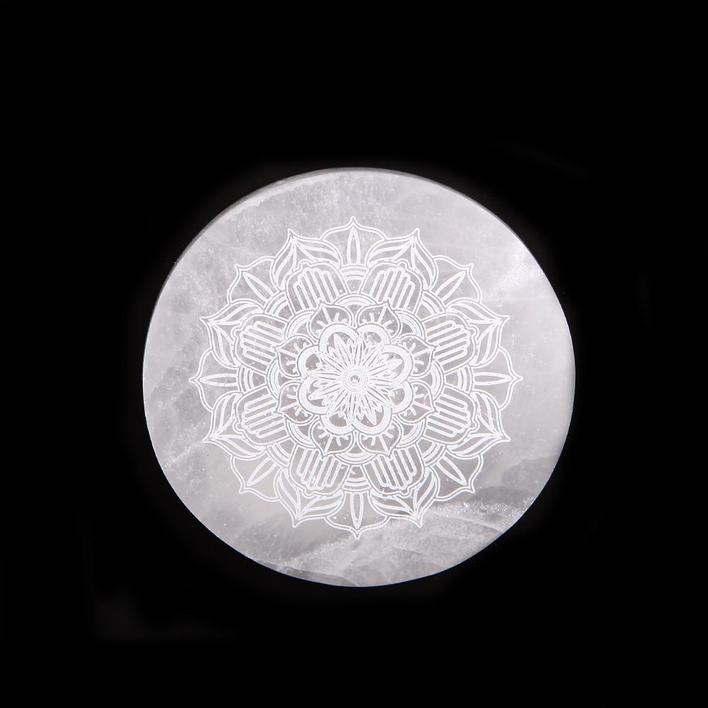 Selenite Plates Plate Natural Carving Symbol Coaster