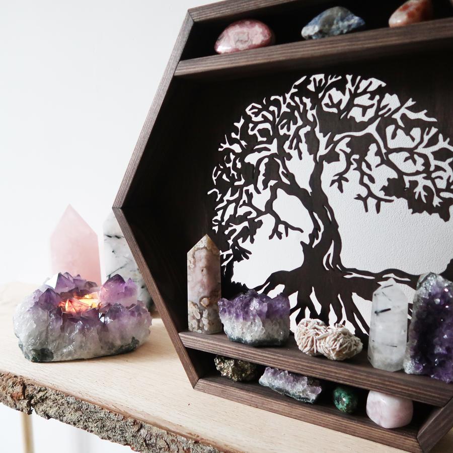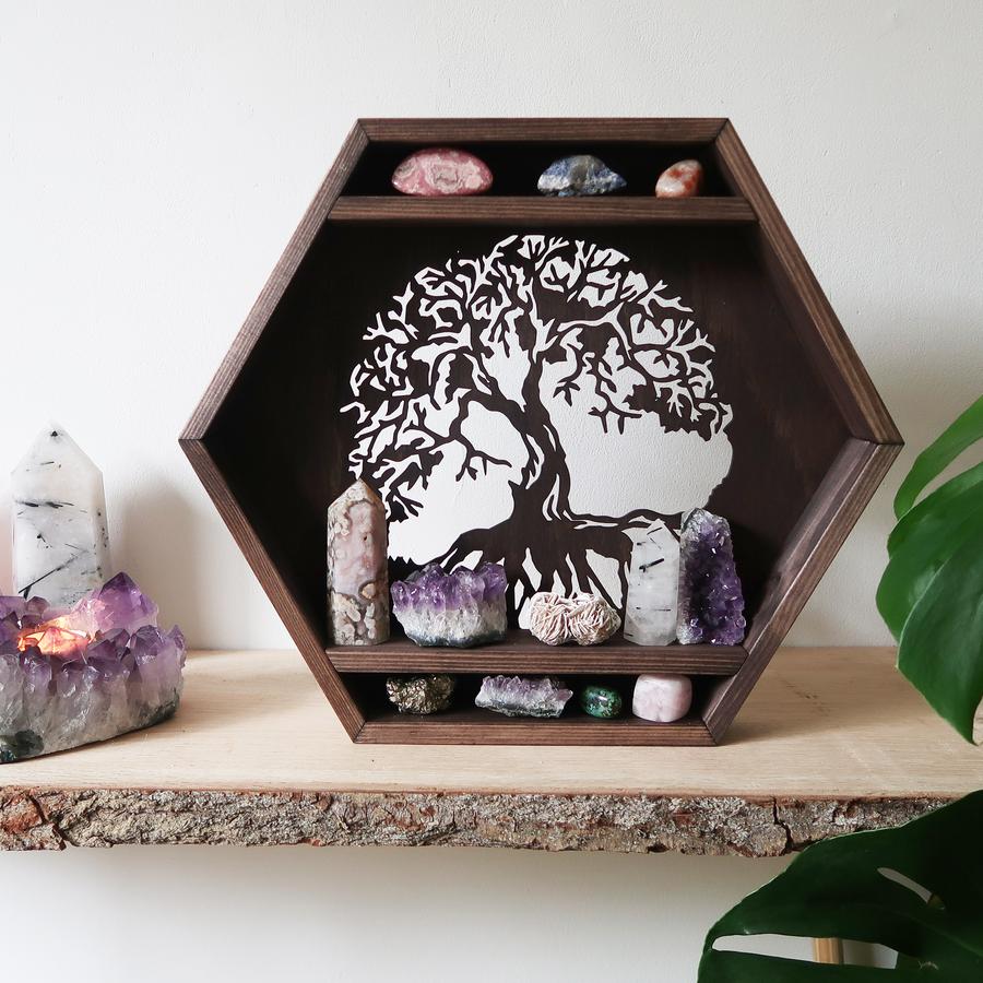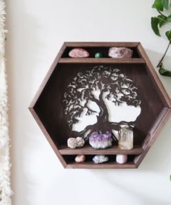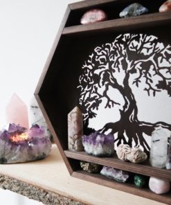 This unique hexagon crystal shelf is built perfectly for displaying your crystals and keepsakes.