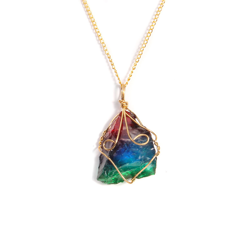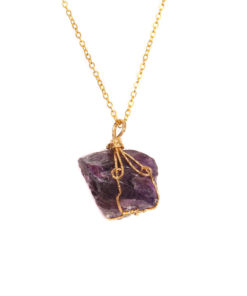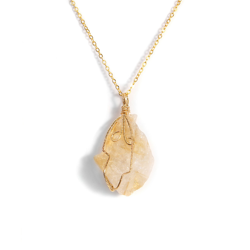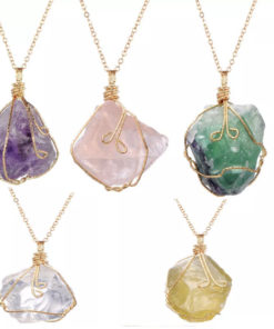Wholesale Raw Clear Crystals Healing Stones Natural Amethyst Wire Wrapped Pendant Necklace Jewelry